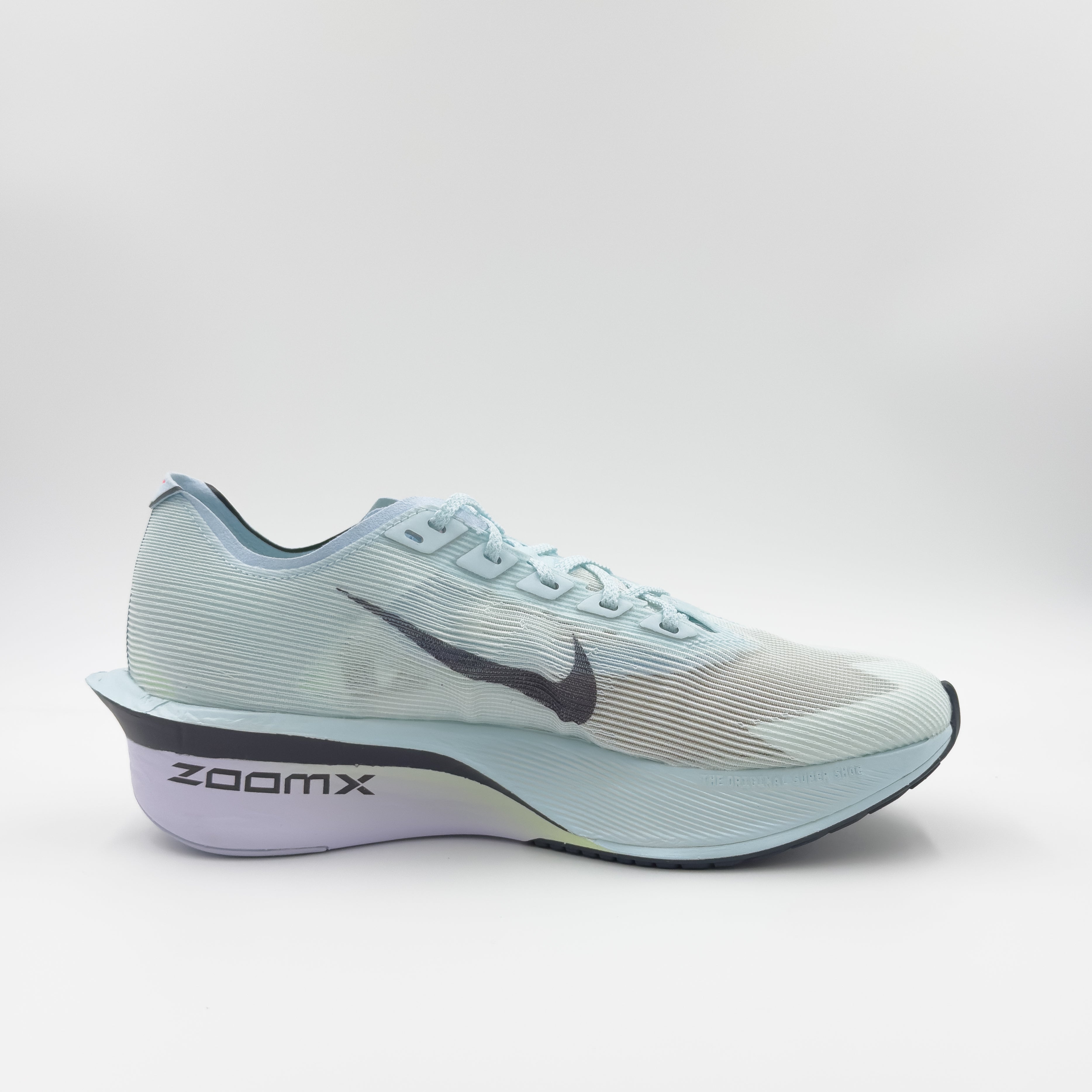 Nike ZoomX, our most responsive foam, just got lighter. Running from heel to toe, it unlocks even more energy return than before thanks to a slight midsole reduction, giving you a bouncy, feathery feel.